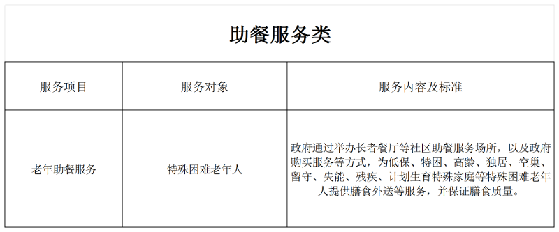 根据《自治区党委办公厅自治区人民政府办公厅印发<关于推进基本养老服务体系建设的实施方案>的通知》(内党办发〔2022〕28号)、《内蒙古自治区积极发展老年助餐服务行动实施方案》(内民政发〔2024〕11号)要求,将老年助餐服务纳入巴彦淖尔市基本养老服务清单。